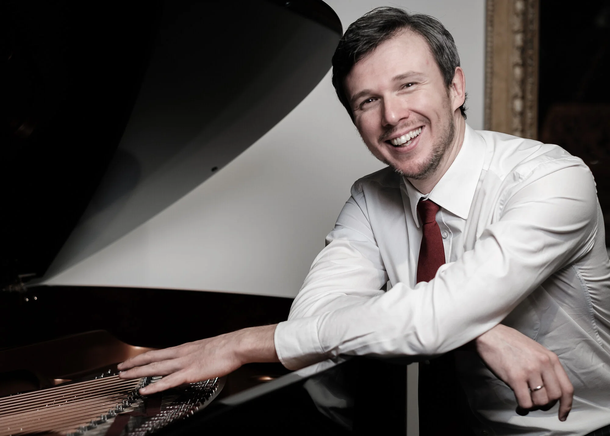 His musical interest started as a 3-year-old playing next door’s piano in Kent, and from the age of 7 he was performing in front of audiences. His training continued with Graham Fitch at the Purcell School, where he also studied violin, viola and composition, giving him a broad appreciation of classical music, and later with Vladimir Ovchinnikov and Peter Feuchtwanger.